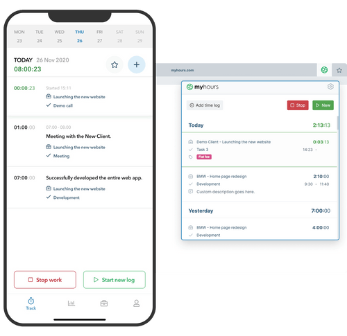 Track time from our web application, browser extension or fully-featured mobile apps. Your data is available in real-time anytime, anywhere.